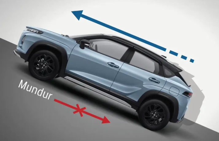 rem, dengan sistem yang mencegah mobil bergeser mundur selama
