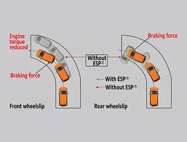 ESP adalah teknologi yang membantu Anda mengendalikan kendaraan saat berada di tikungan dan menjaga traksi roda saat menambah kecepatan atau bergerak di atas permukaan jalan yang licin. Apabila dideteksi adanya roda yang tergelincir, sistem ESP akan mengatur mesin dan torsi secara otomatis dalam memilih fungsi rem untuk membantu anda mengatur kendali.